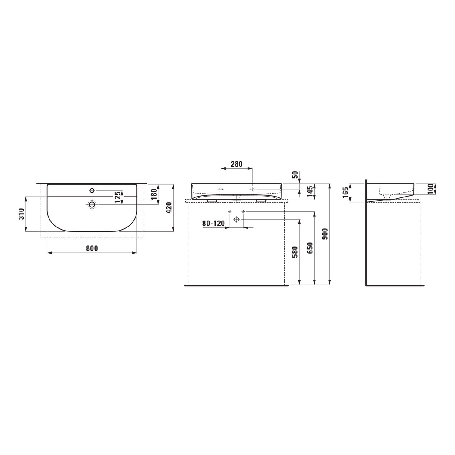 LAUFEN Sonar Aufsatzwaschtisch 80 x 42 cm, mit 1 Hahnloch