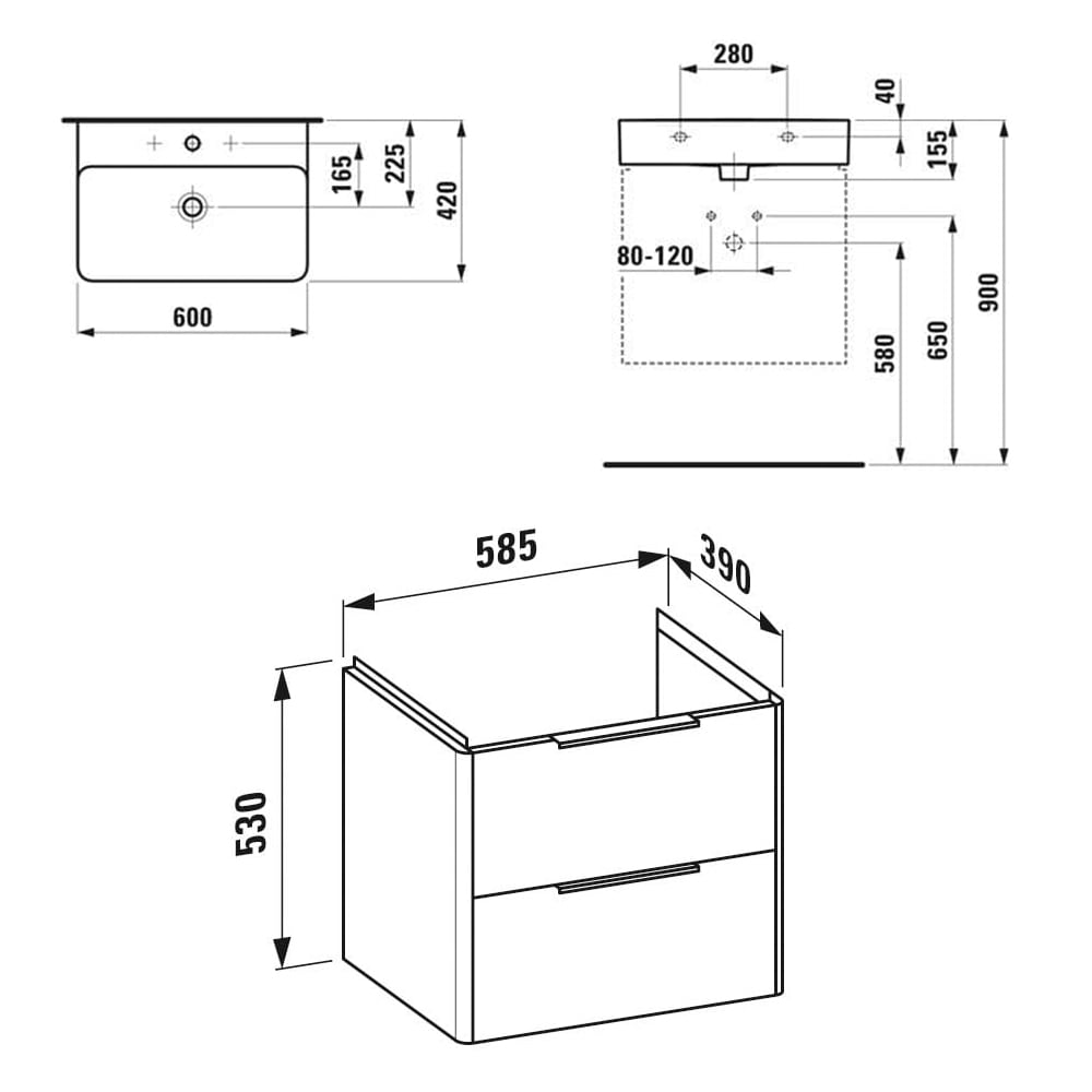 LAUFEN BASE für VAL Waschtischunterbau mit Waschtisch 58,5 x 39 cm