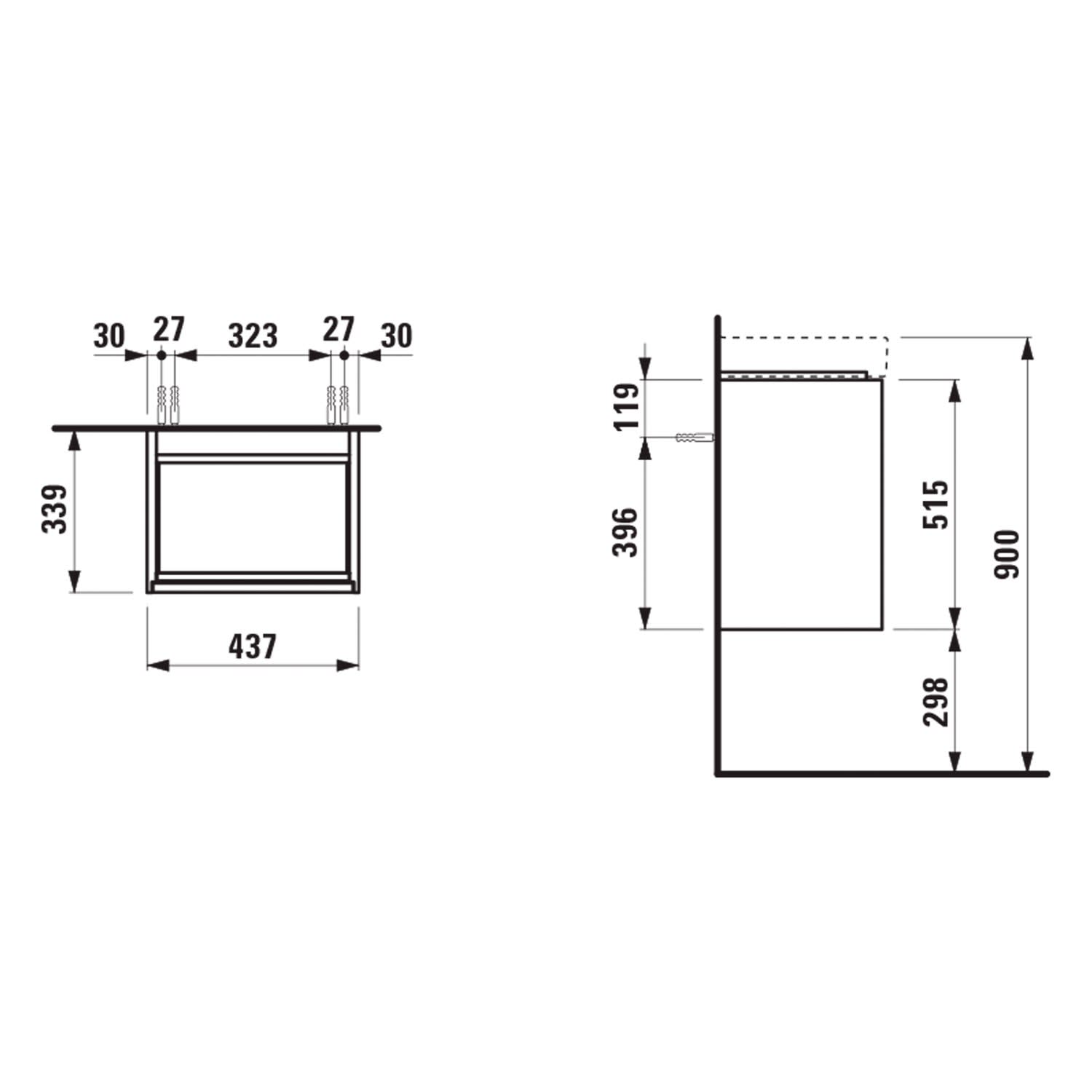 LAUFEN MEDA Waschtischunterschrank 44 cm mit 1 Tür, Anschlag rechts
