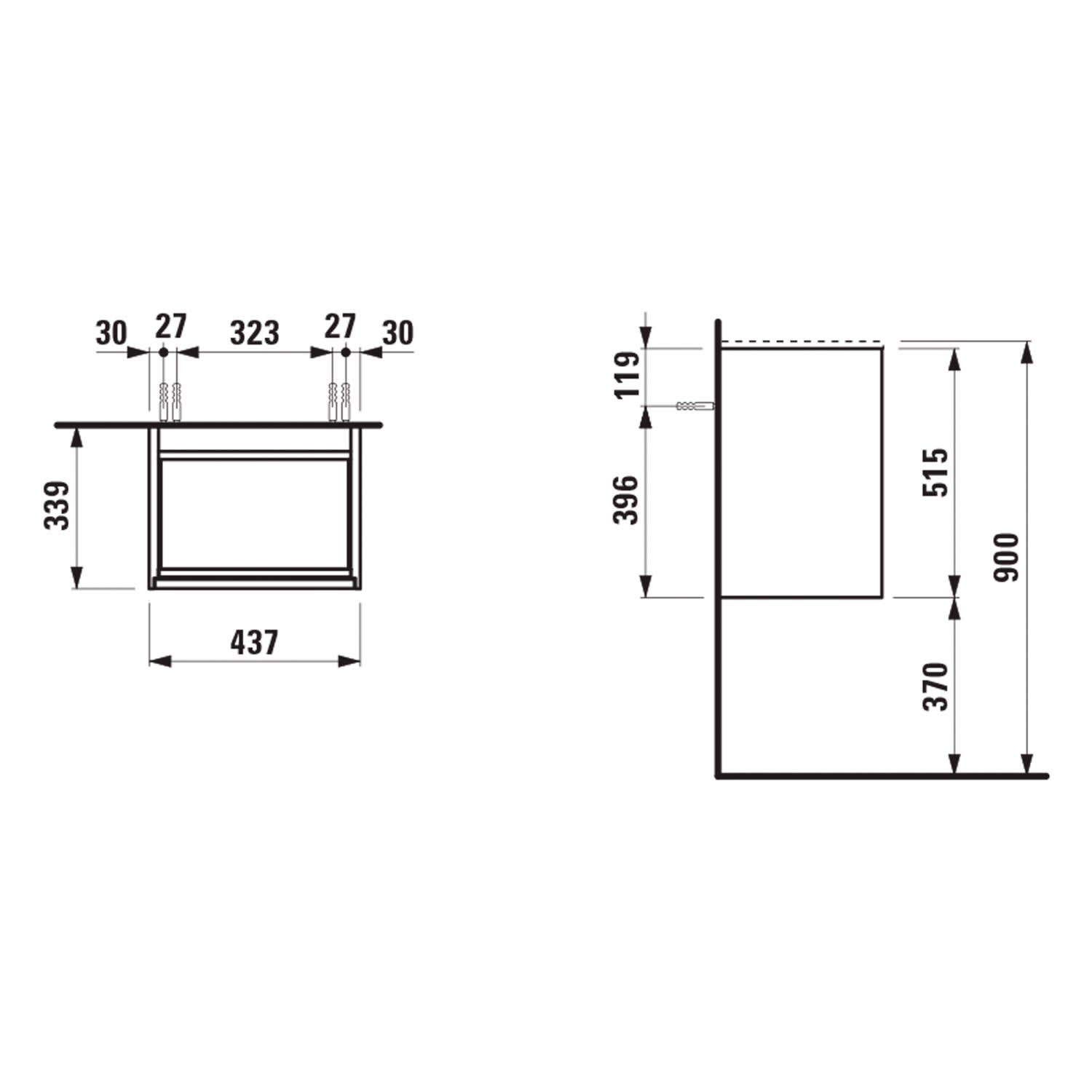 LAUFEN MEDA Waschtischunterschrank 44 cm mit 1 Tür, Anschlag rechts