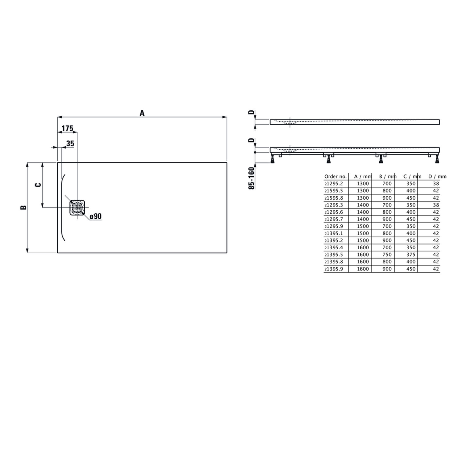 - Pro Marbond Duschwannen sind in über 30 Standardgrößen verfügbar