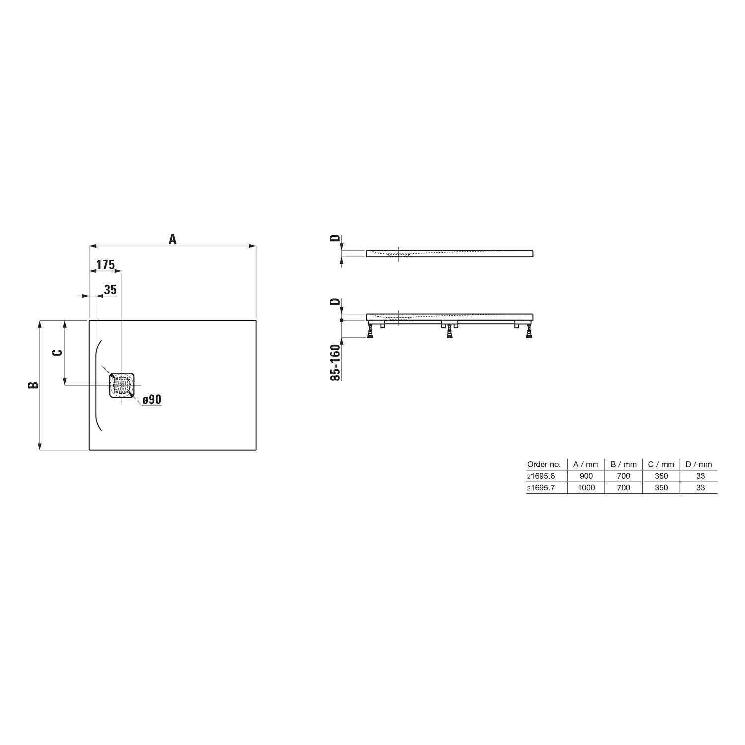 - Pro Marbond Duschwannen sind in über 30 Standardgrößen verfügbar