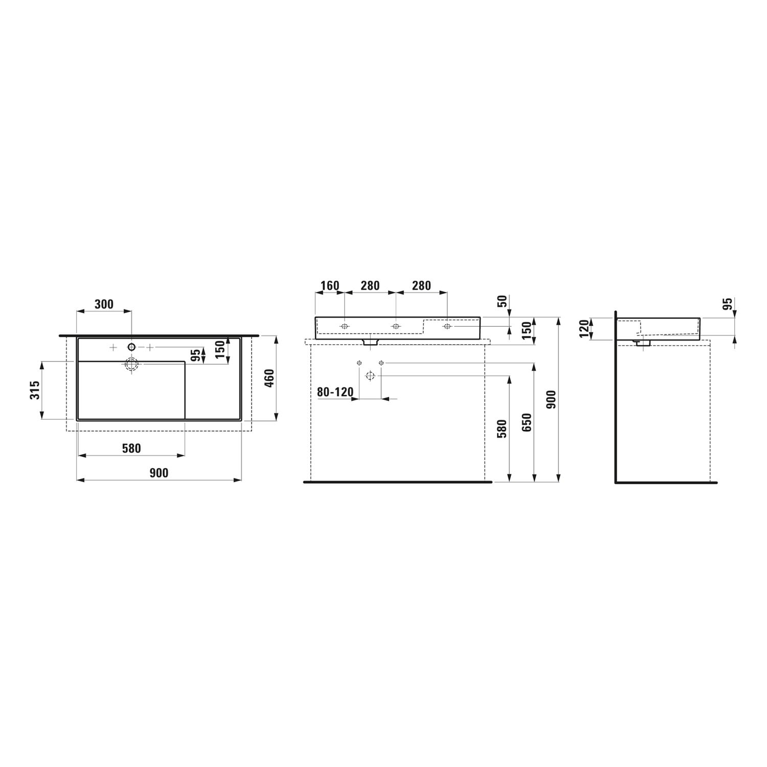 LAUFEN Kartell by LAUFEN Aufsatzwaschtisch 90 x 46 cm, ohne Hahnloch, Ablage rechts