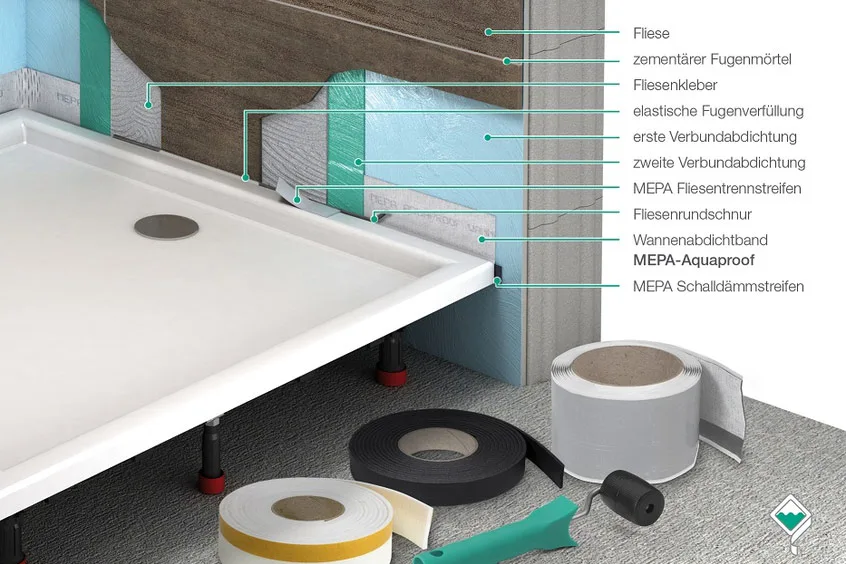 Ein Wannenranddichtband ist die logische Wahl. Dieses wird etwa von Marktführer MEPA (Aquaproof 3D) und Poresta Systems (3D Wannenrand-Dichtset) angeboten und kann natürlich auch bei uns bestellt werden. Die Dichtbänder werden im Set verkauft und bringen noch weitere Vorteile mit sich: Dem Set liegt u.a. ein Schalldämmstreifen bei, welcher die Geräuschentwicklung bei Nutzung der Wanne merklich reduziert. Wer auf eine professionelle und sichere Abdichtung Wert legt und der DIN 18534-1 gerecht werden möchte, der ist mit einer solchen Lösung gut beraten.