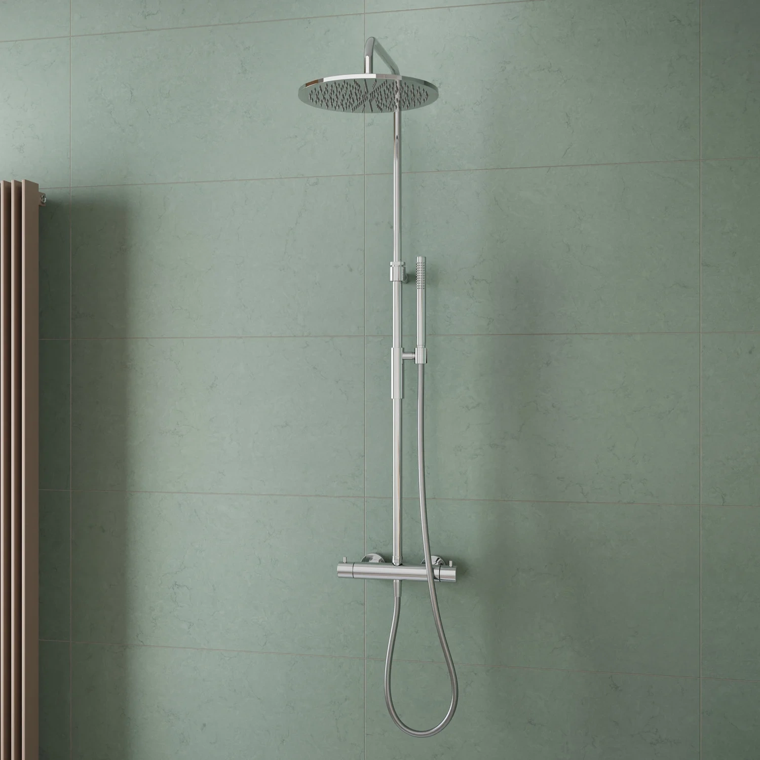 Das System ist die simple Lösung, denn Sie installieren die Armatur – oft samt Handbrause – einfach an der üblichen Wandzuleitung. Allerdings ist der Duschkopf meist kleiner.