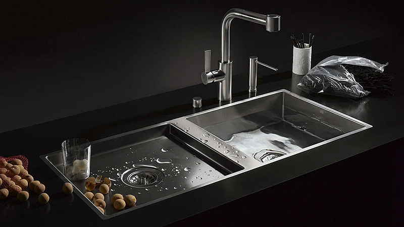Edelstahl-Küchenspülen sind deshalb so beliebt, weil sie gleich drei Vorteile in einem bieten: Hygiene, einfache Pflege und eine ansprechende Optik. Wünschen Sie sich für einen zeitlosen Klassiker, der sich flexibel in Ihre persönliche Kücheneinrichtung einfügt, ist eine Edelstahlspüle genau das Richtige. Denn häufig wiederholt sich das Edelstahl-Design bei anderen Küchenutensilien wie Toaster, Wasserkocher & Co. Auch die Auswahl der optimalen Küchenarmatur fällt bei diesen Spülen meist leichter, da sie fast uneingeschränkt mit anderen Materialien kombinierbar sind. Unser Geheimtipp ist dennoch die Kombination aus Edelstahlspüle und Edelstahl-Spültischarmatur: z.b. aus unserer Serie Architekt Steel.