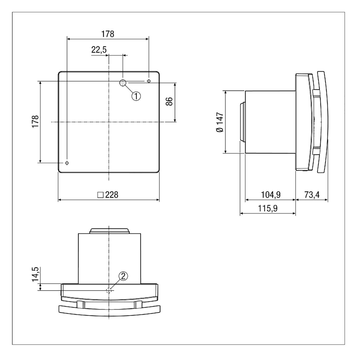 - mit Frostschutzfunktion durch die sich der Ventilator bei Innentemperaturen von weniger als 5 °C automatisch abschaltet