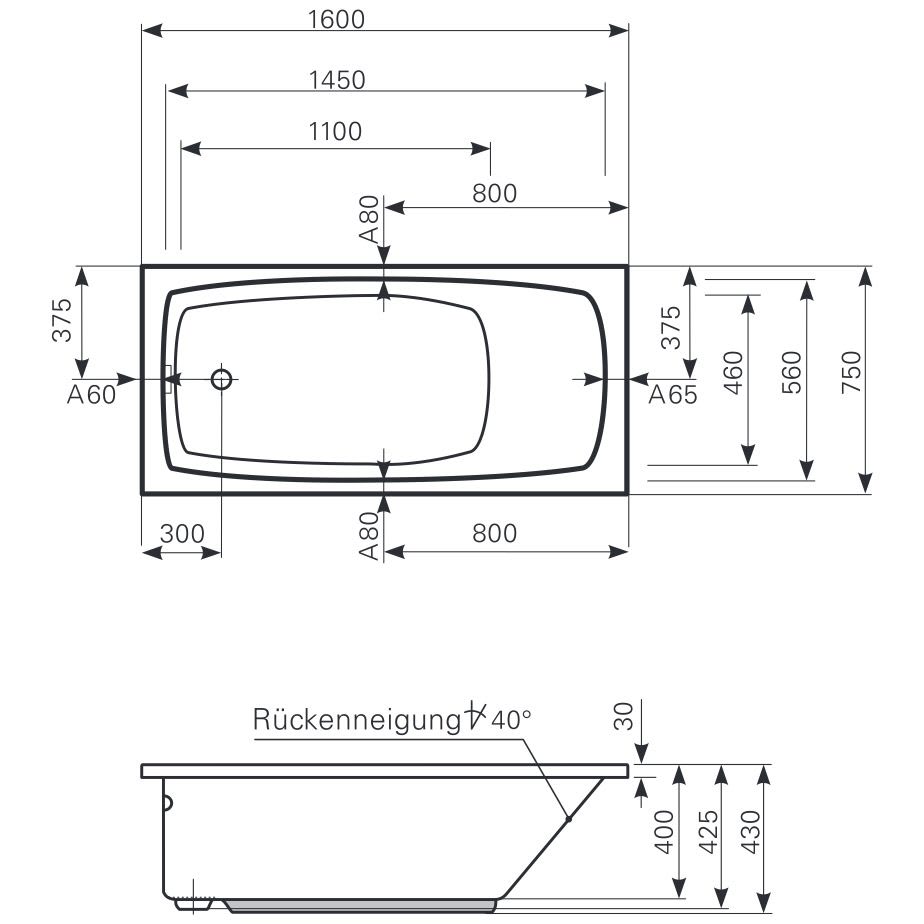 Mauersberger Badewanne Elisal 160 x 75 cm