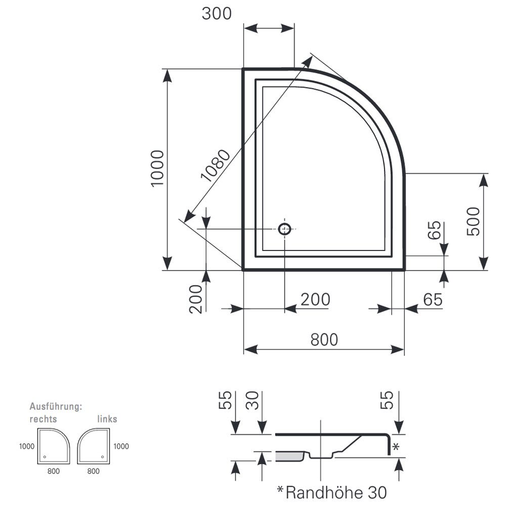 Mauersberger Viertelkreis-Duschwanne Albis 100 x 80 superflach rechts