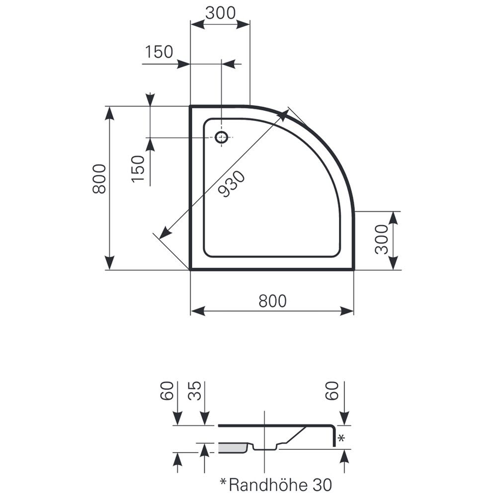 Viertelkreis-Duschwanne