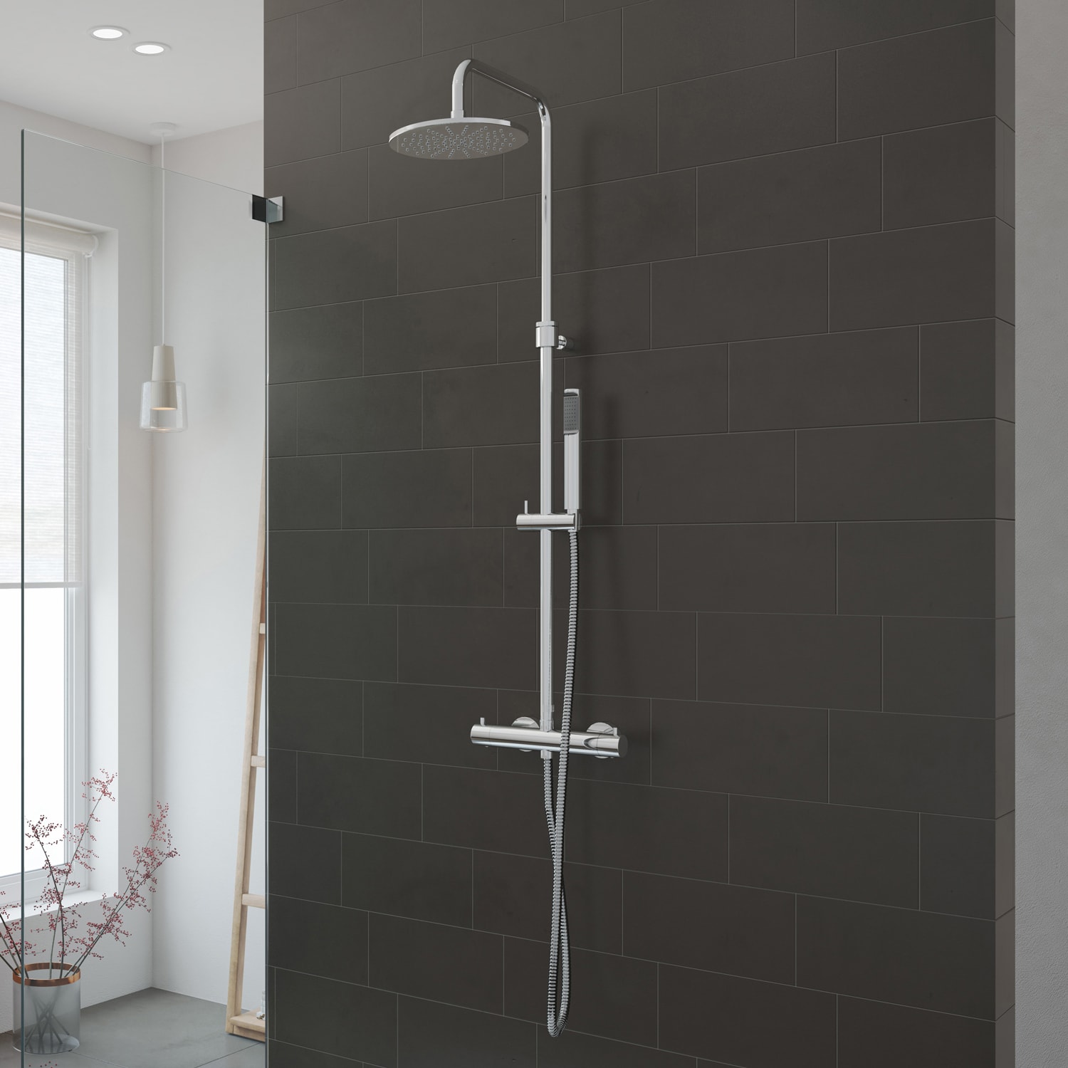 House Duschsystem mit Thermostat-Brausebatterie und Kopfbrause rund, Aufputz