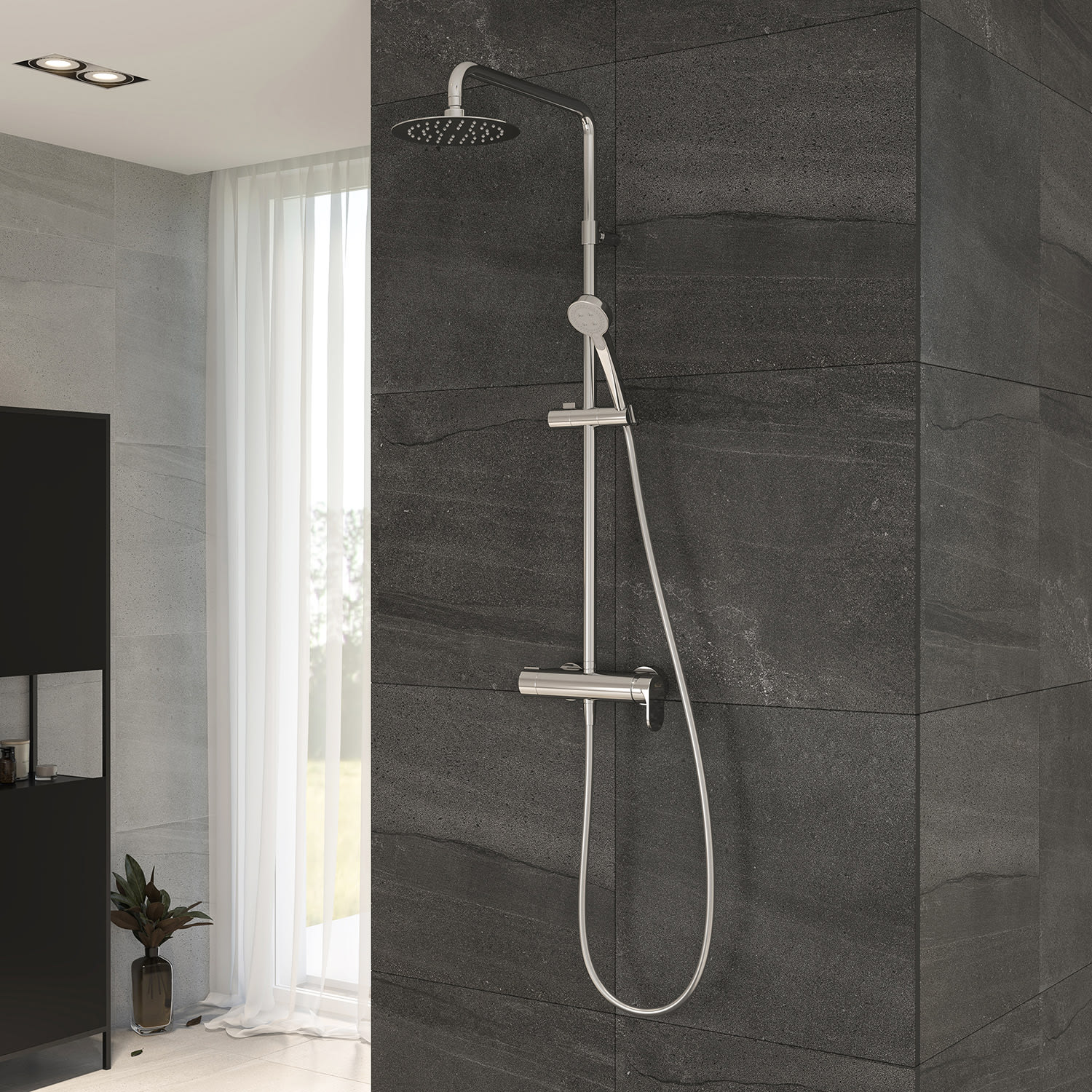 House Duschsystem mit Einhebel-Brausebatterie und Kopfbrause ultraflach rund, Aufputz