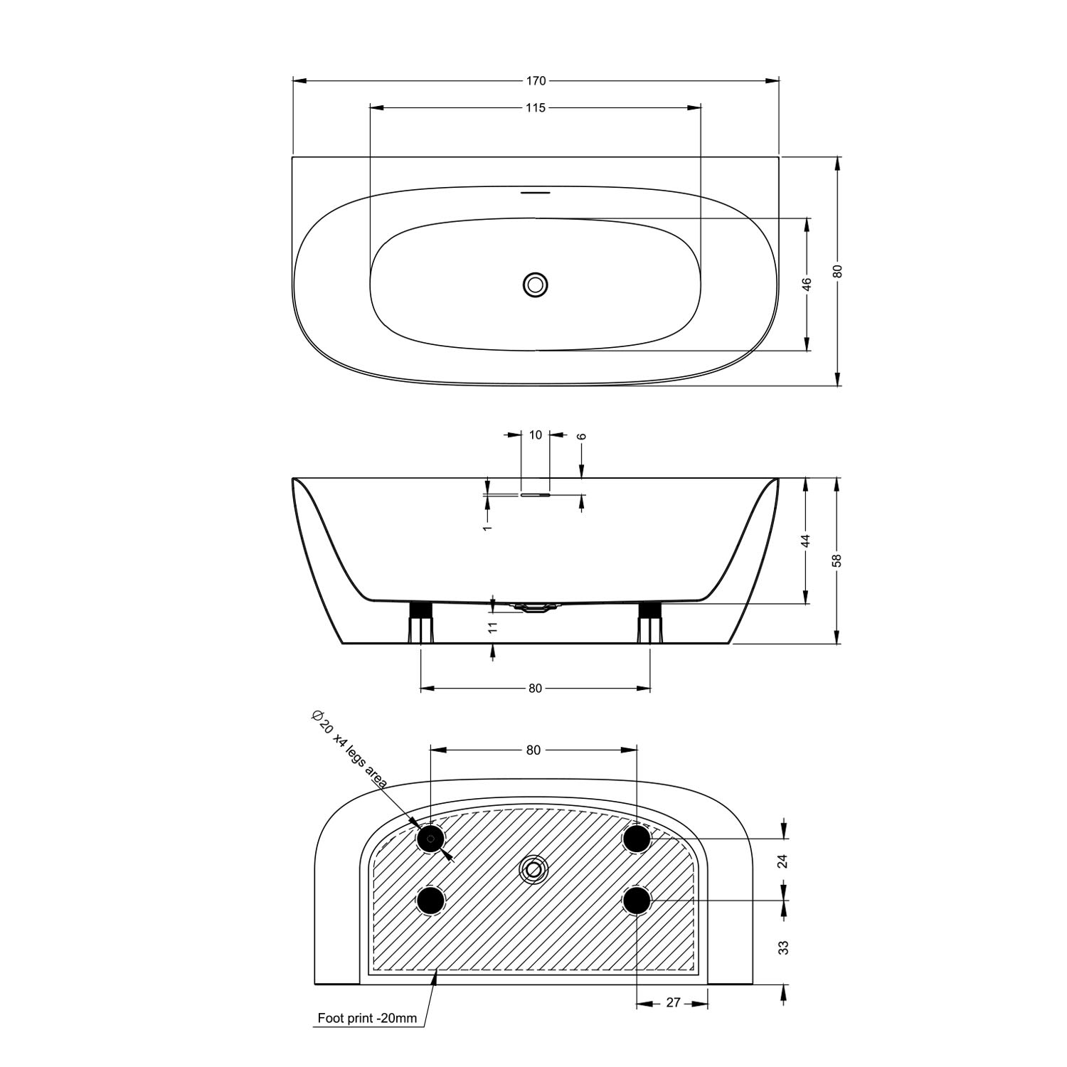 inkl. Ablauf und Füße