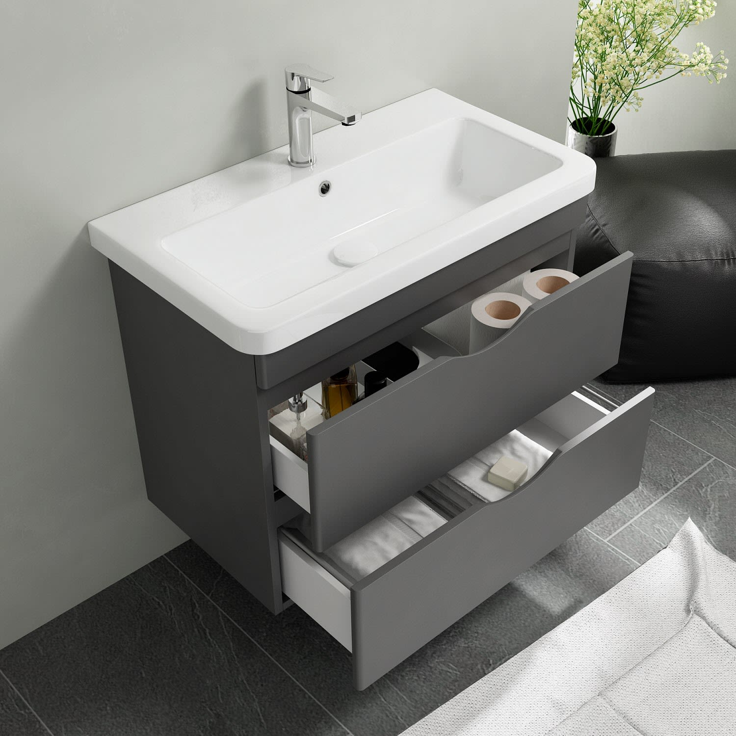 Home Waschtisch mit Unterschrank 80 cm, 2 Auszüge