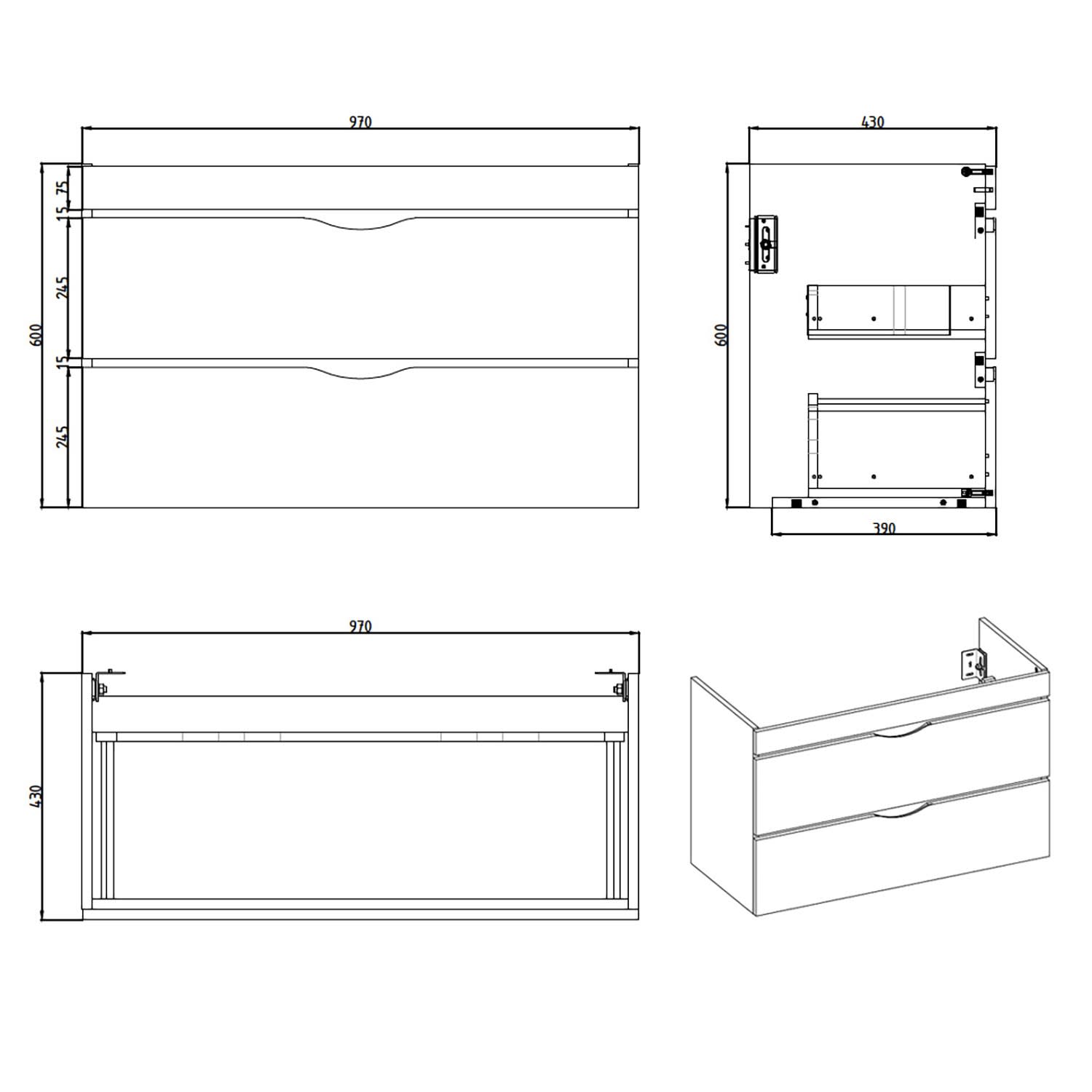 Home Waschtischunterschrank 100 cm, 2 Auszüge