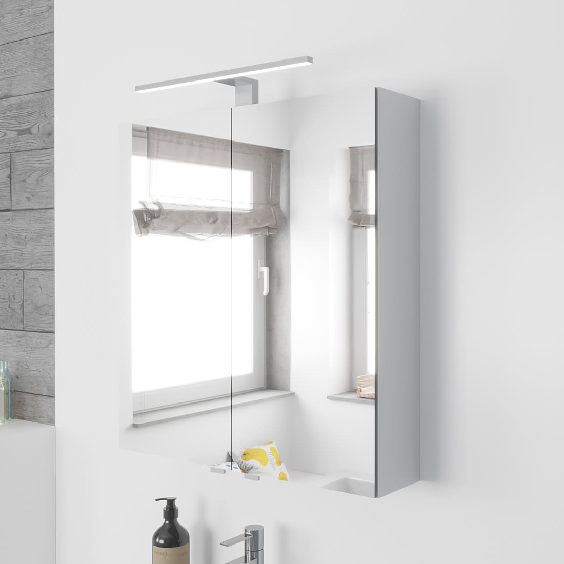 Lodge Spiegelschrank 60 cm mit 2 Türen und LED-Aufbauleuchte