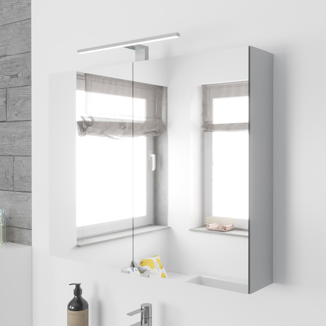 Lodge Spiegelschrank 80 cm mit 2 Türen und LED-Aufbauleuchte