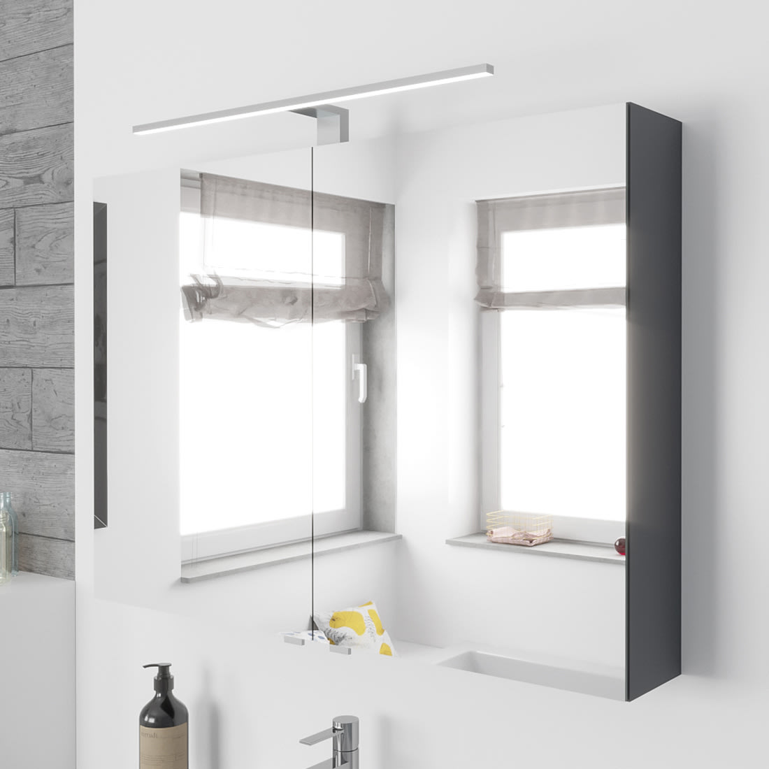 Lodge Spiegelschrank 90 cm mit 2 Türen und LED-Aufbauleuchte