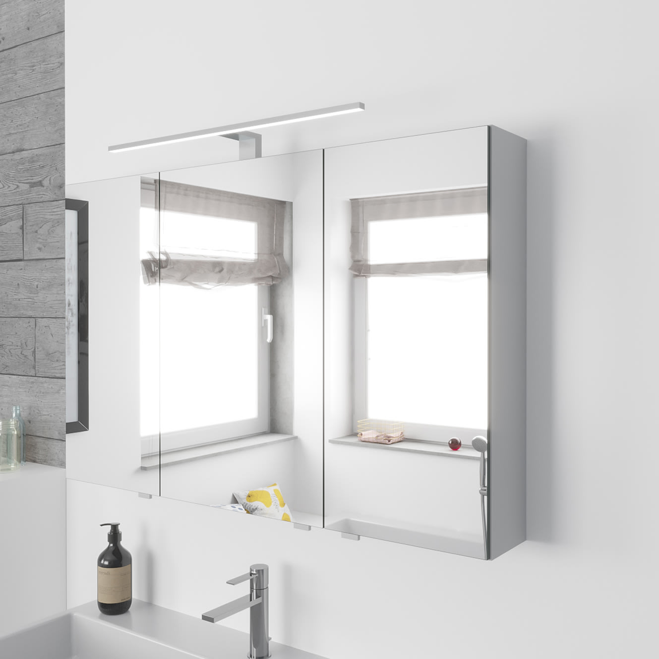 Lodge Spiegelschrank 100 cm mit 3 Türen und LED-Aufbauleuchte