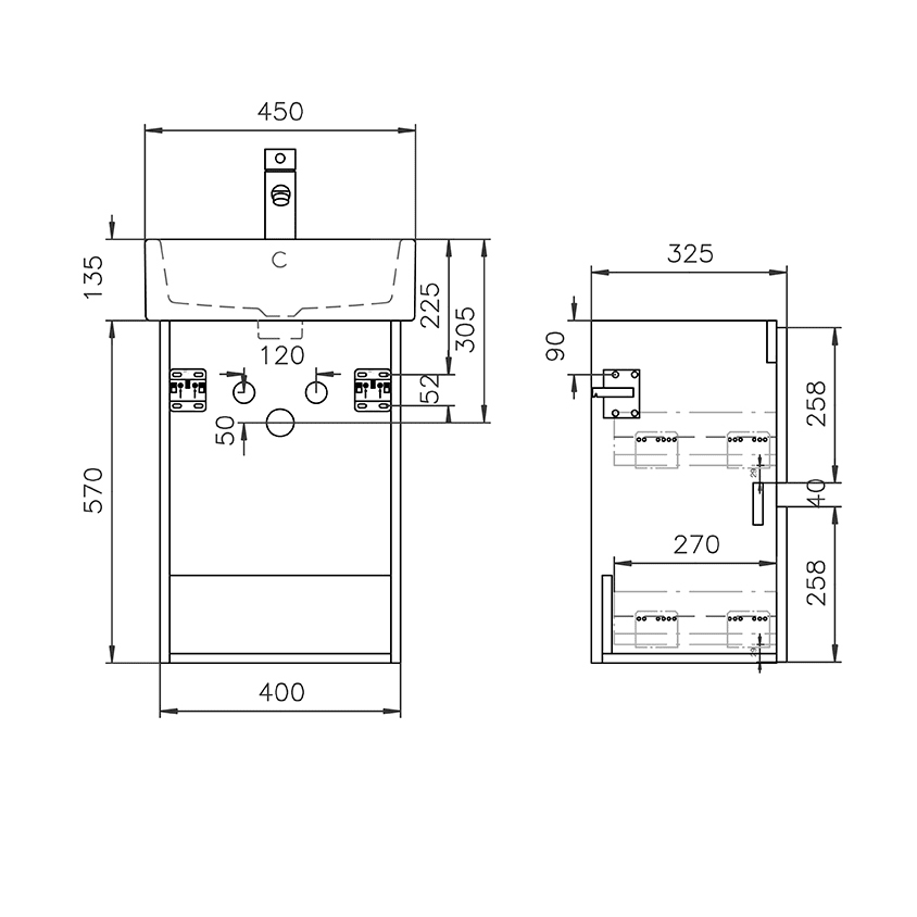 Lodge Waschtischunterschrank 40 cm mit 2 Auszügen für Waschtisch Duravit Vero Air
