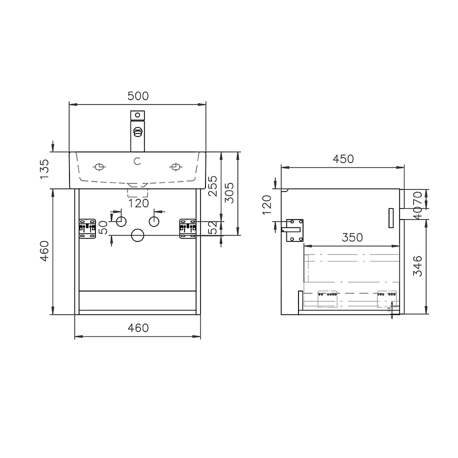Lodge Waschtischunterschrank 46 cm mit 1 Auszug für Waschtisch Duravit Vero Air