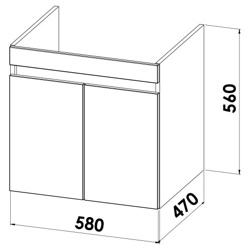 Lodge Waschtischunterschrank 58 cm mit 2 Türen für Waschtisch Geberit Renova