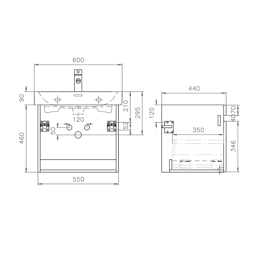 Lodge Waschtischunterschrank 55 cm mit 1 Auszug für Waschtisch Geberit iCon