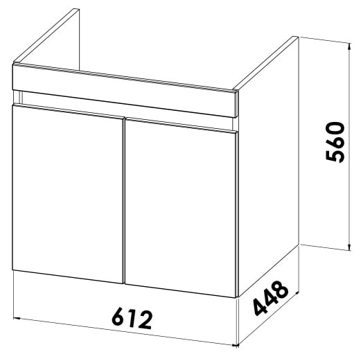 B: 61,2 T: 44,8 H: 56 cm