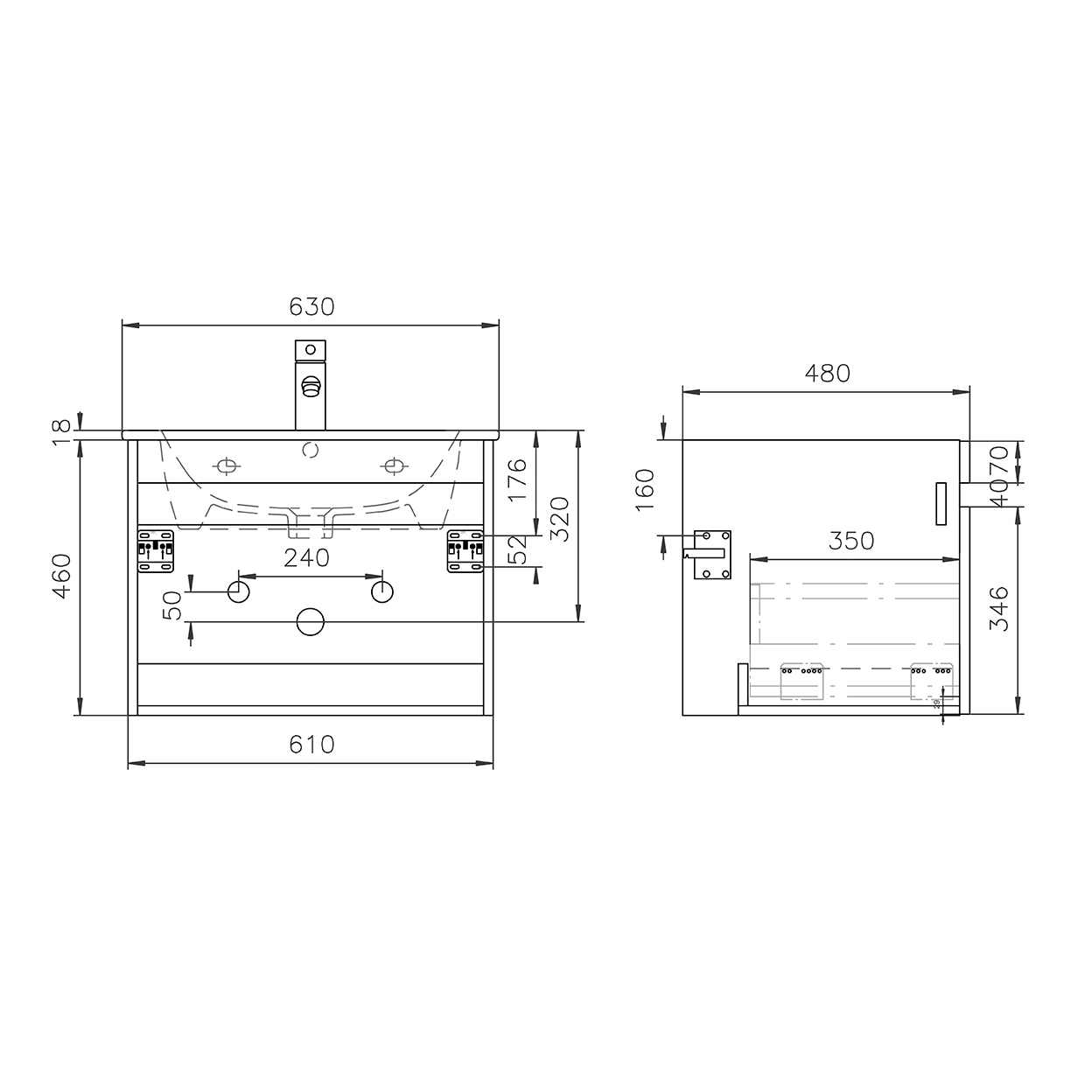 Lodge Waschtischunterschrank 61 cm mit 1 Auszug für Waschtisch Duravit ME by Stark