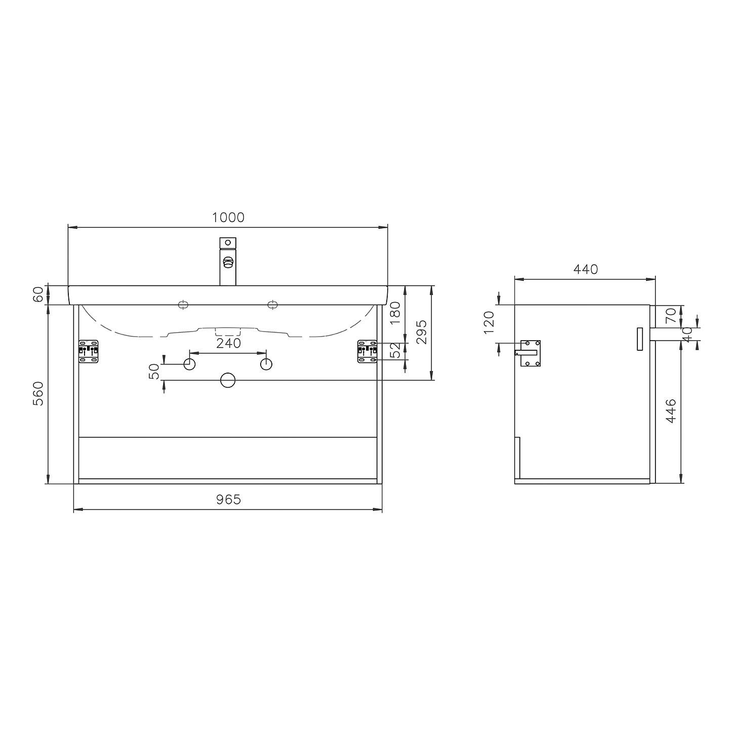 B: 96,5 T: 44 H: 56 cm