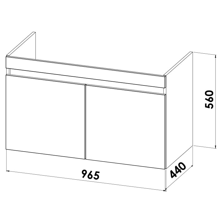 B: 96,5 T: 44 H: 56 cm