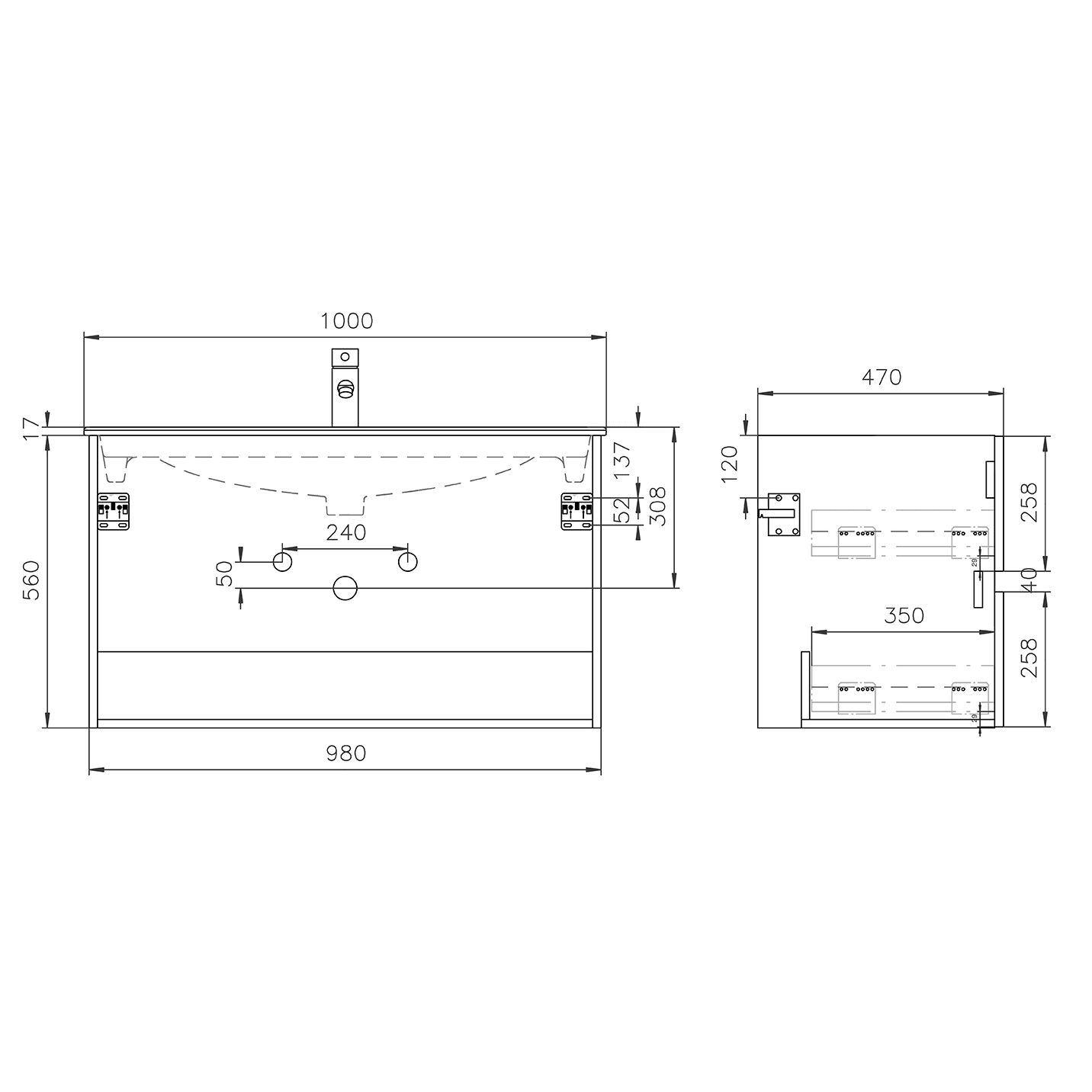 Lodge Waschtischunterschrank 98 cm mit 2 Auszügen für Waschtisch Geberit Renova
