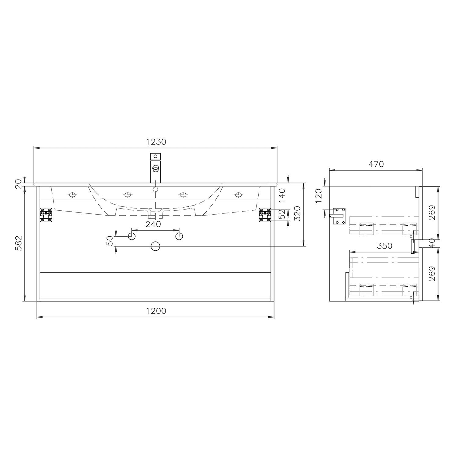 Lodge Waschtischunterschrank 120 cm mit 2 Auszügen für Waschtisch Duravit ME by Stark