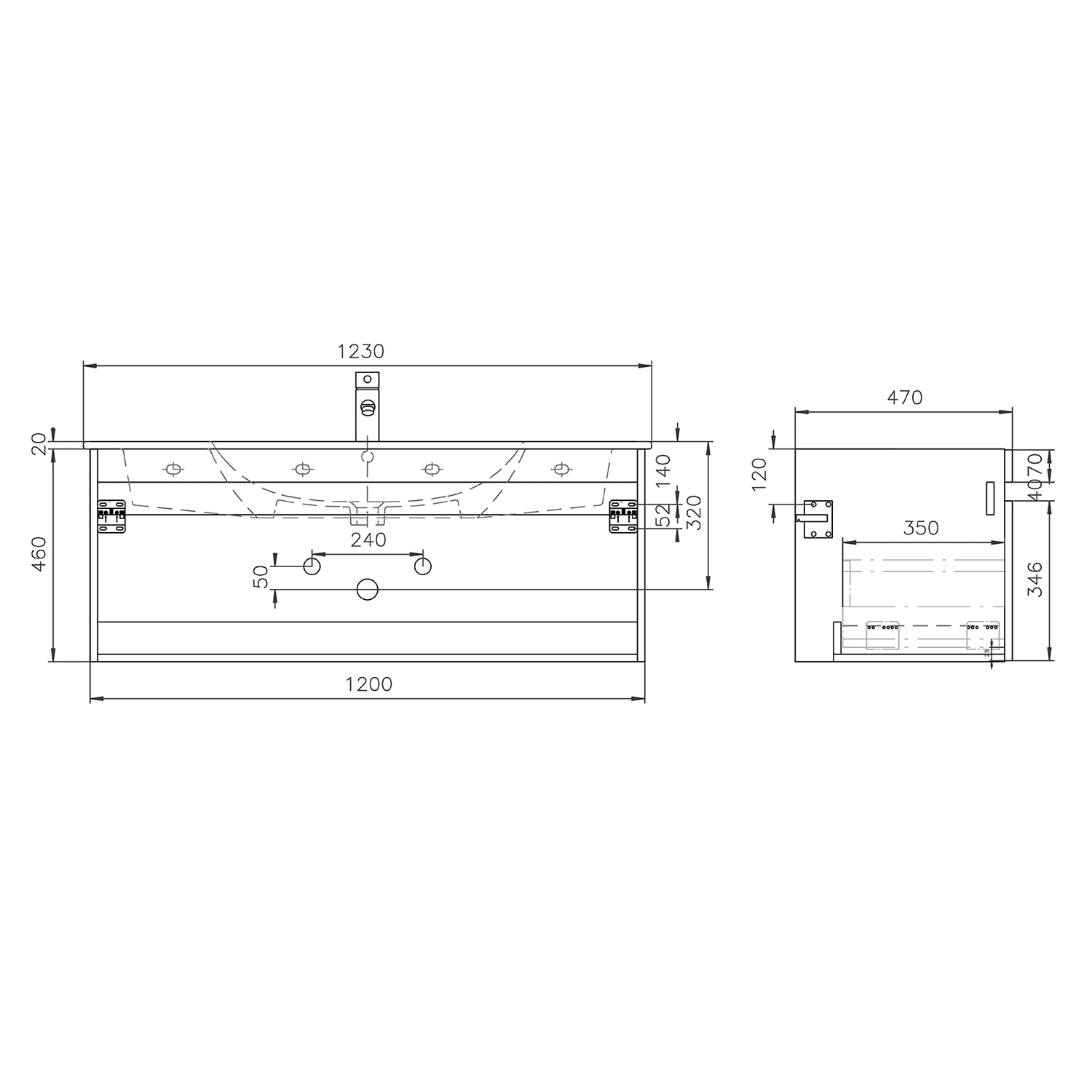 Lodge Waschtischunterschrank 120 cm mit 1 Auszug für Waschtisch Duravit ME by Stark