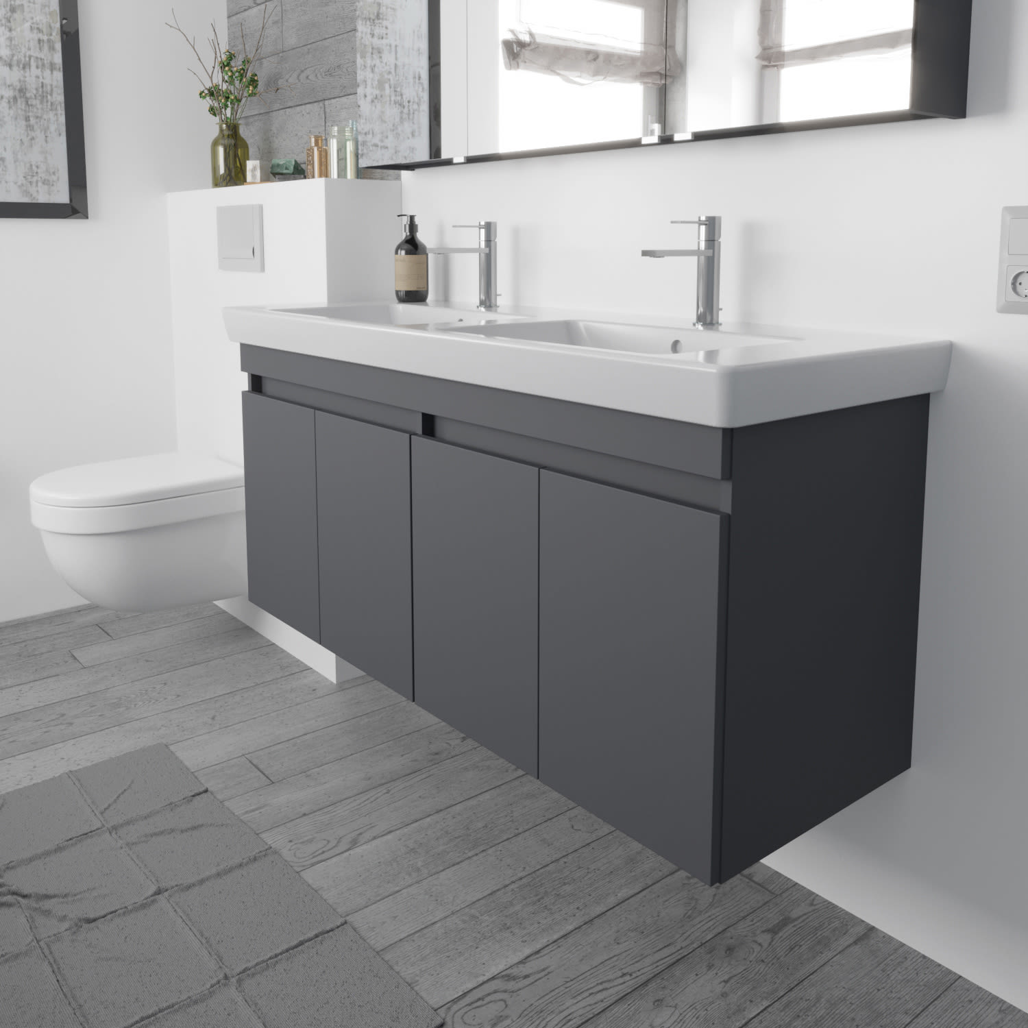 Lodge Doppel-Waschtischunterschrank 124,5 cm mit 4 Türen für Waschtisch Villeroy & Boch Subway 2.0