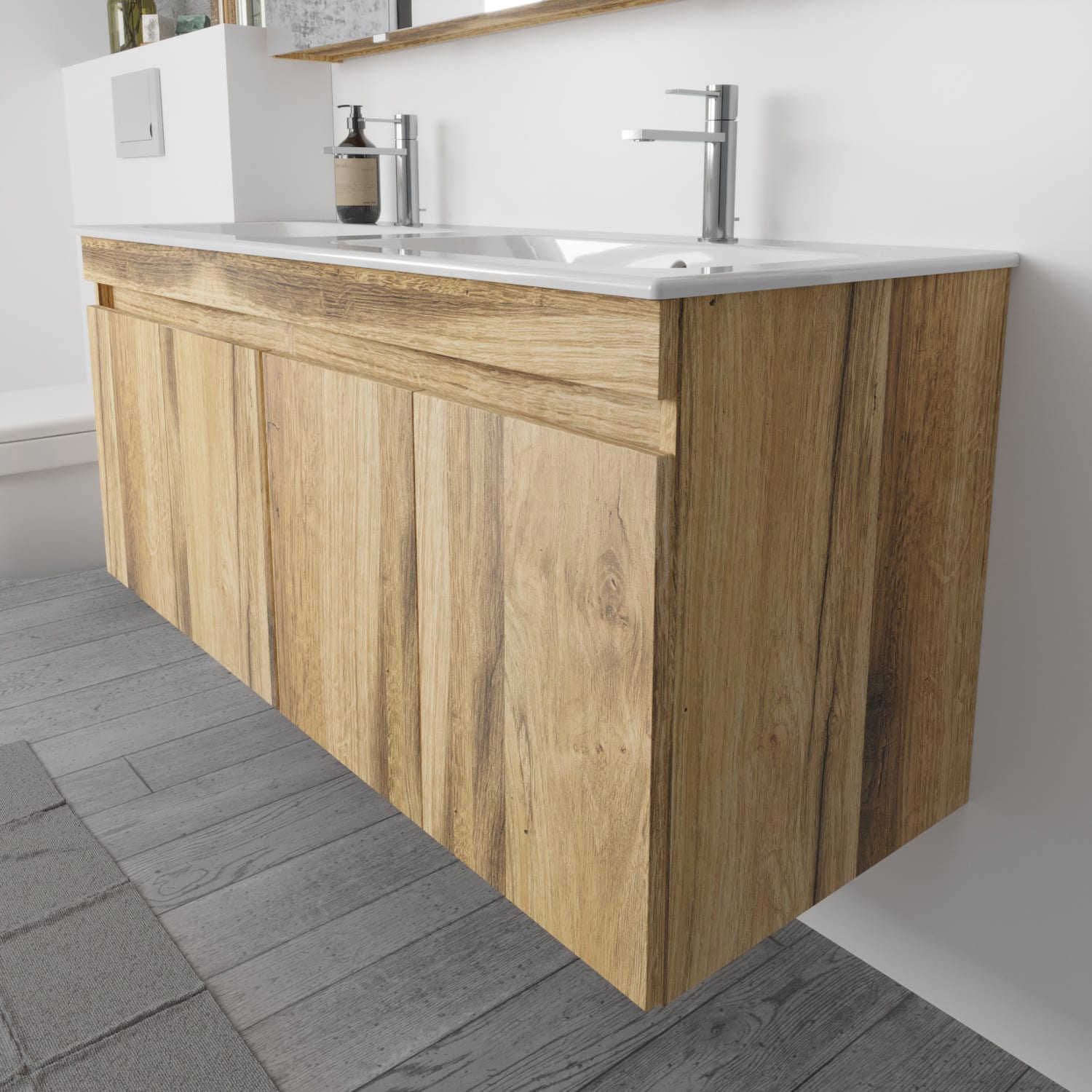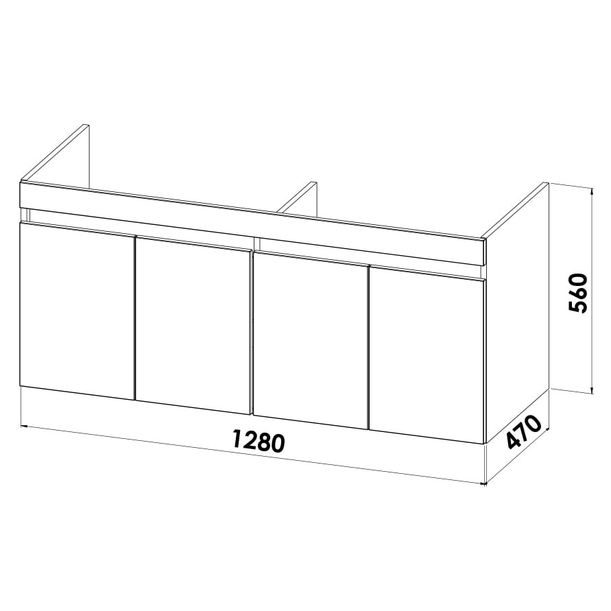 Lodge Doppel-Waschtischunterschrank 128 cm mit 4 Türen für Waschtisch Geberit Renova