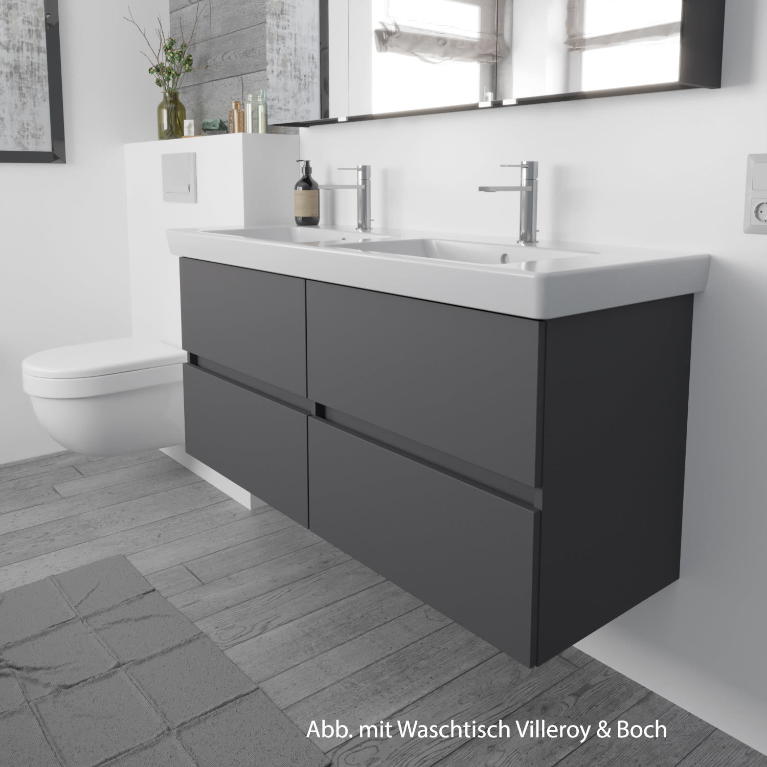 Lodge Doppel-Waschtischunterschrank 128 cm mit 4 Auszügen für Waschtisch Geberit Renova
