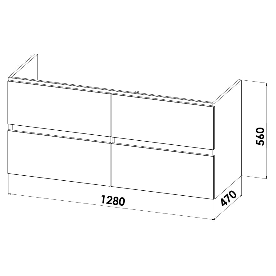 Lodge Doppel-Waschtischunterschrank 128 cm mit 4 Auszügen für Waschtisch Geberit Renova