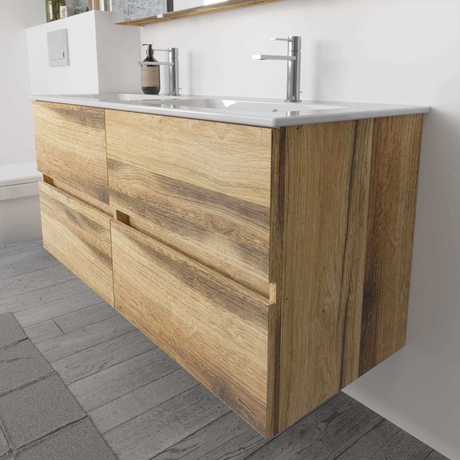 Lodge Doppel-Waschtischunterschrank 127 cm mit 4 Auszügen für Waschtisch Duravit ME by Stark