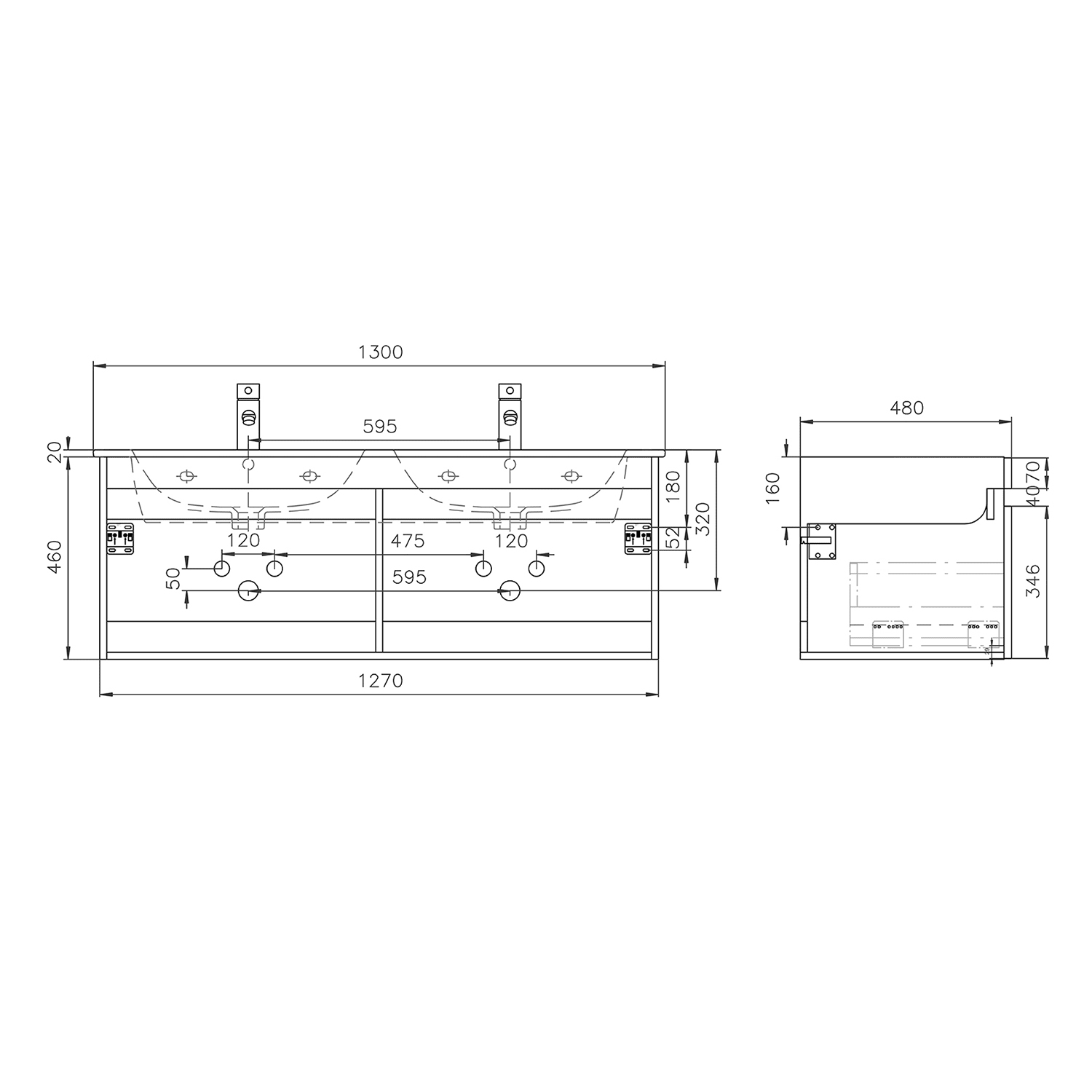 Lodge Doppel-Waschtischunterschrank 127 cm mit 2 Auszügen für Waschtisch Duravit Me by Stark