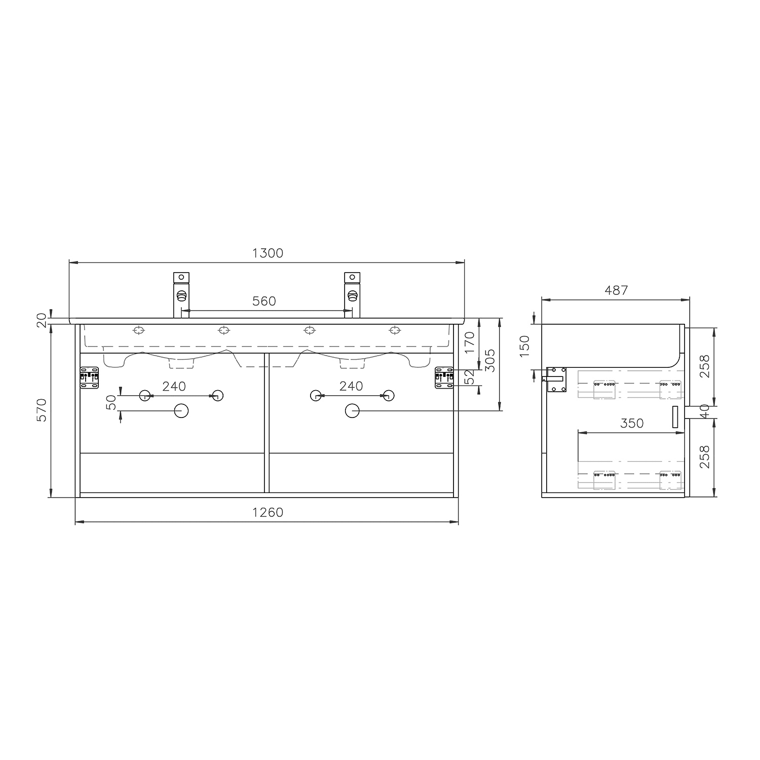 Lodge Doppel-Waschtischunterschrank 126 cm mit 4 Auszügen für Waschtisch Villeroy & Boch Venticello
