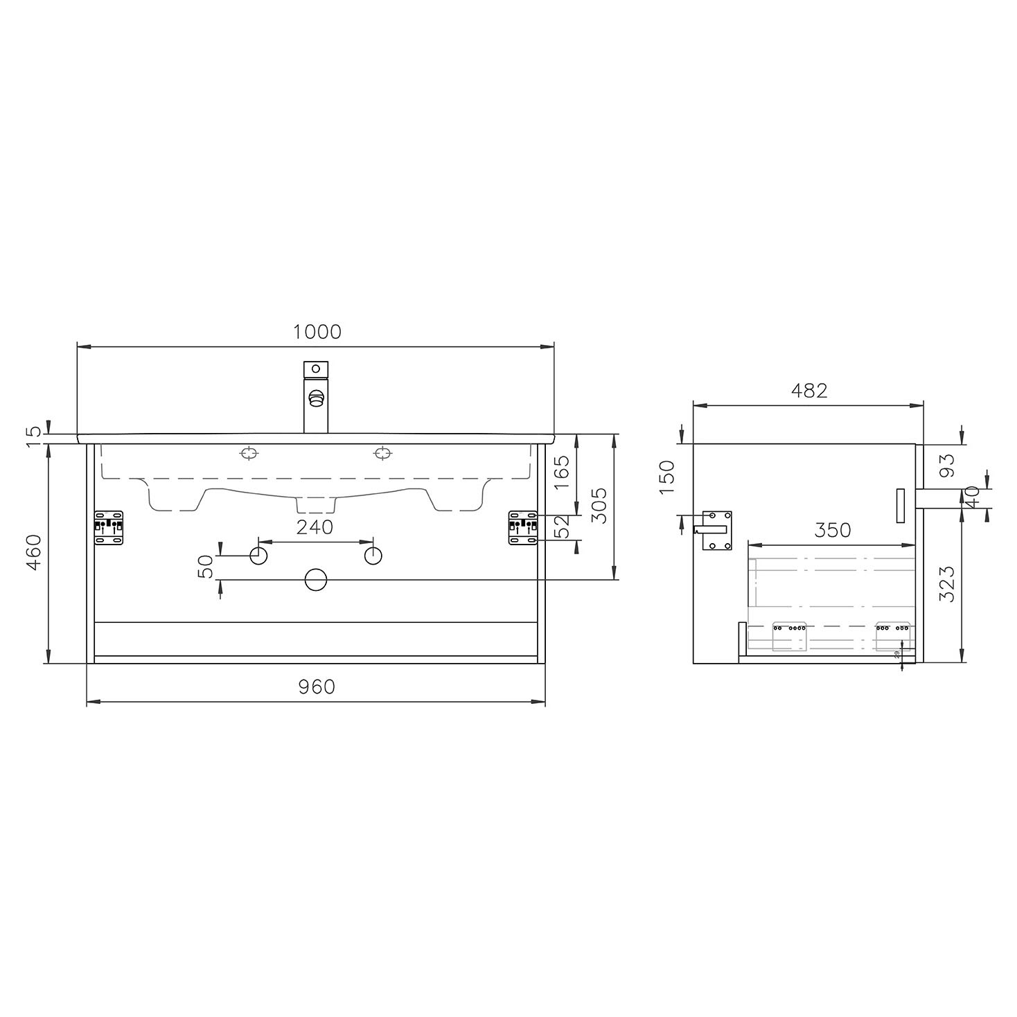 Lodge Waschtischunterschrank 96 cm mit 1 Auszug für Waschtisch Villeroy & Boch Venticello