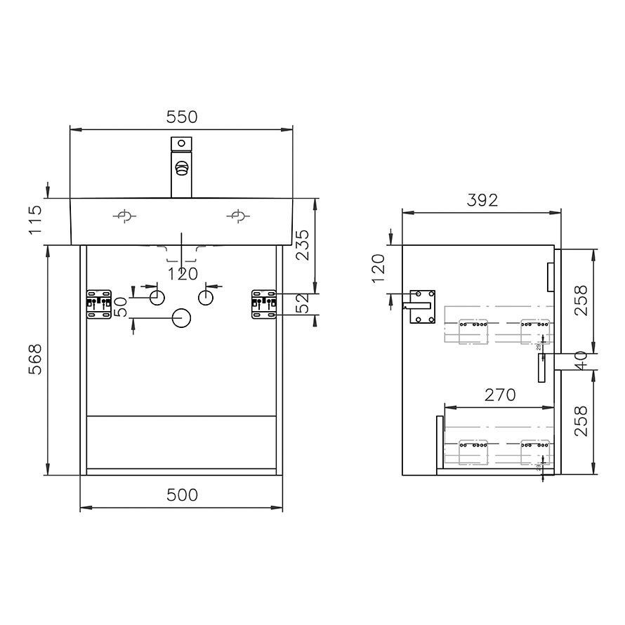 Lodge Waschtischunterschrank 50 cm mit 2 Auszügen für Waschtisch LAUFEN Val