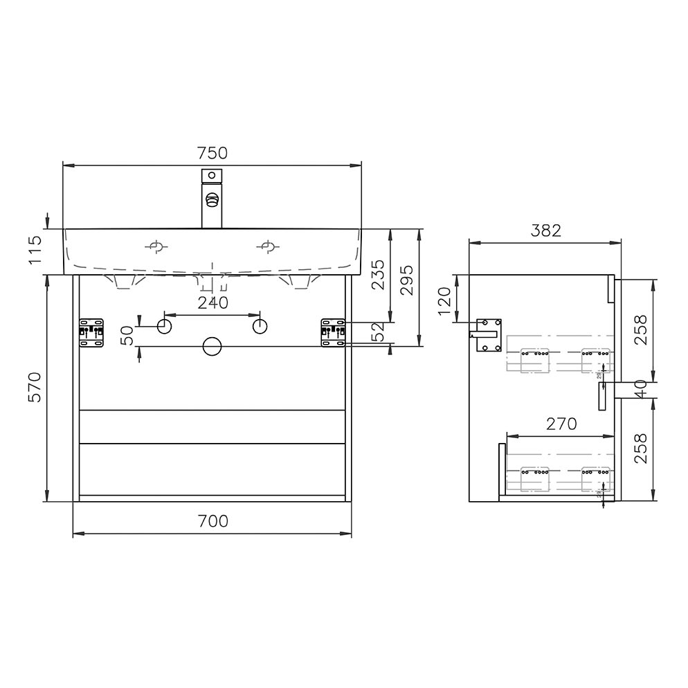 Lodge Waschtischunterschrank 70 cm mit 2 Auszügen für Waschtisch LAUFEN Val