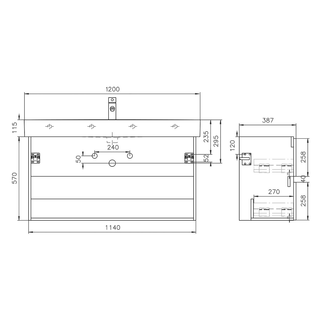 Lodge Doppel-Waschtischunterschrank 120 cm mit 2 Auszügen für Waschtisch LAUFEN Val