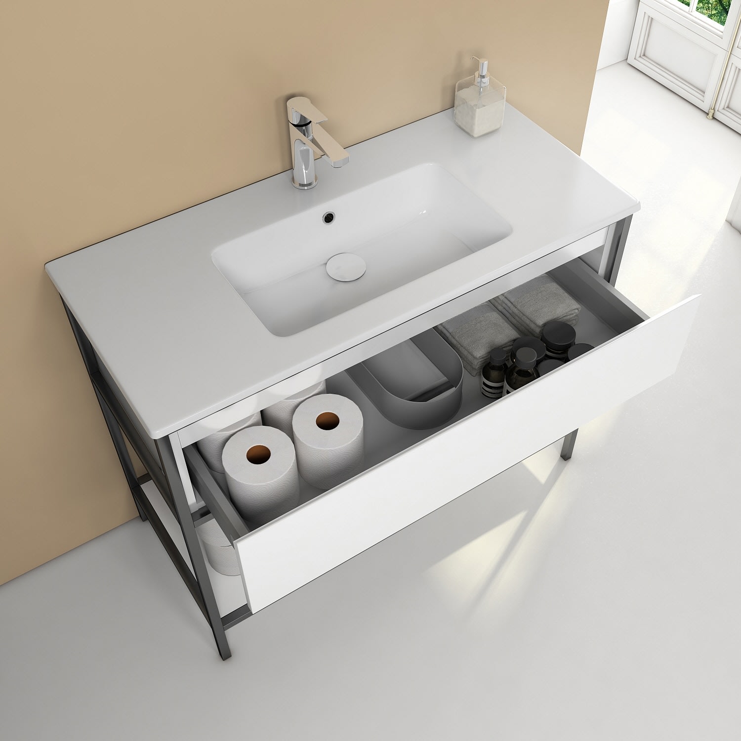 Loft 2.0 Waschtischunterschrank 100 cm, mit Metallgestell