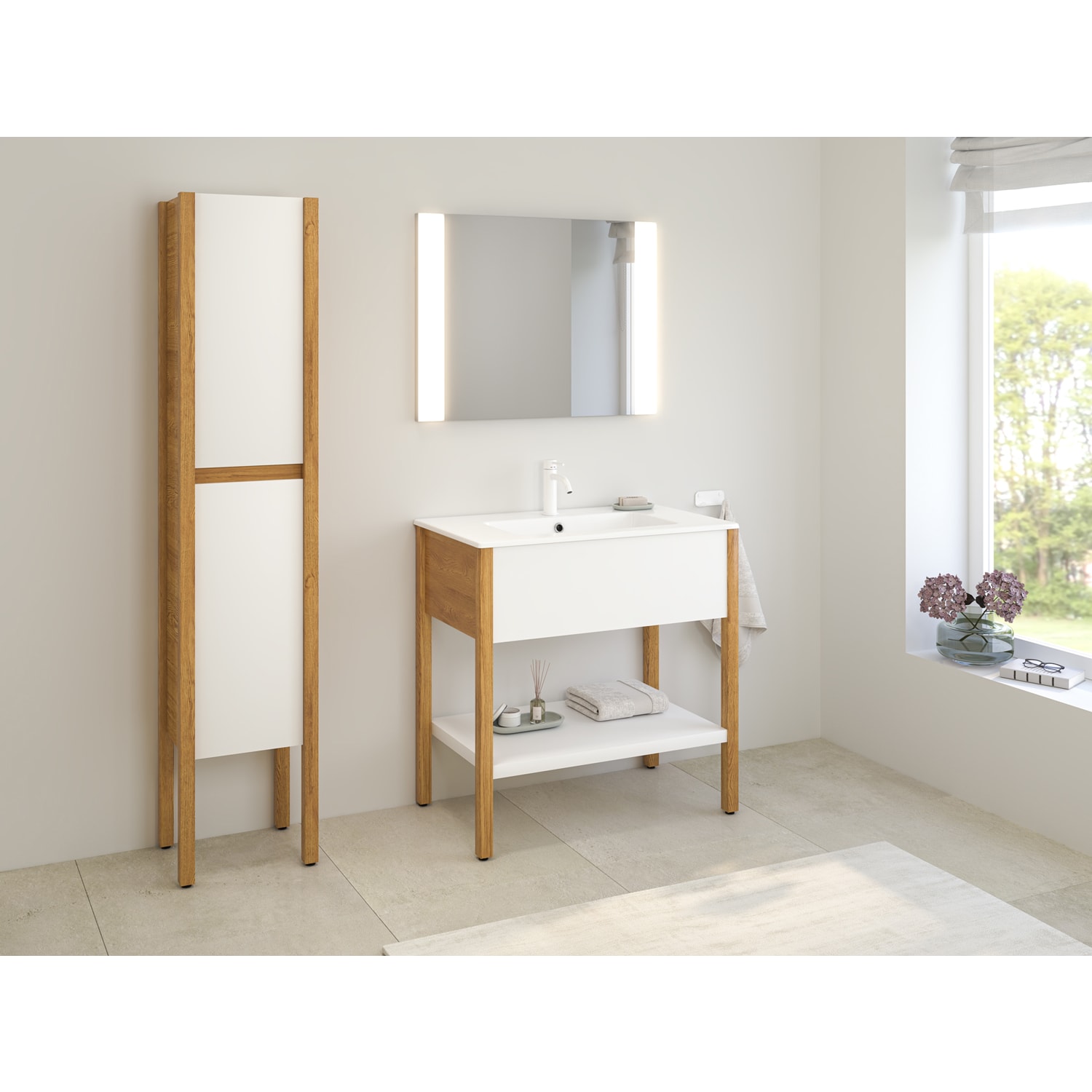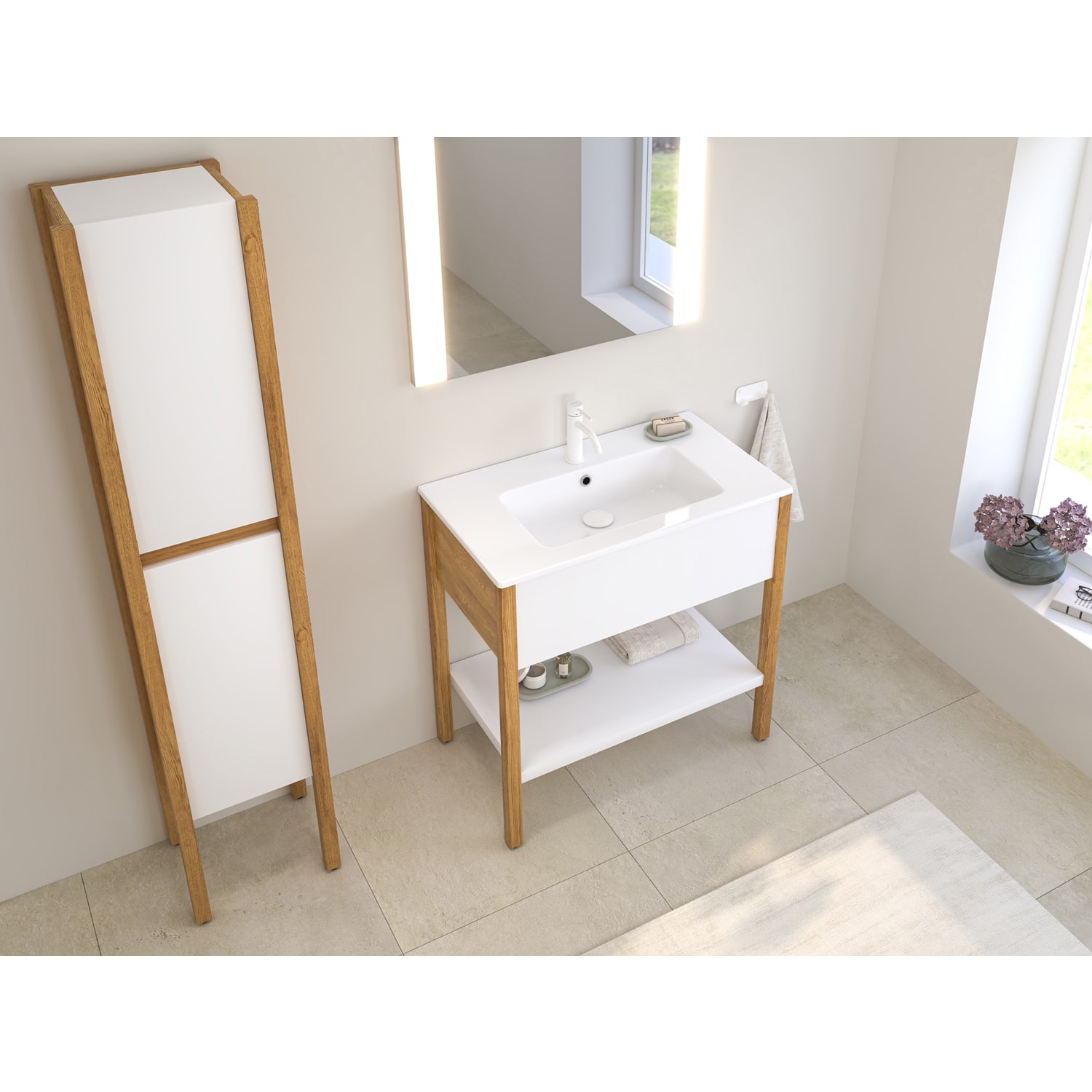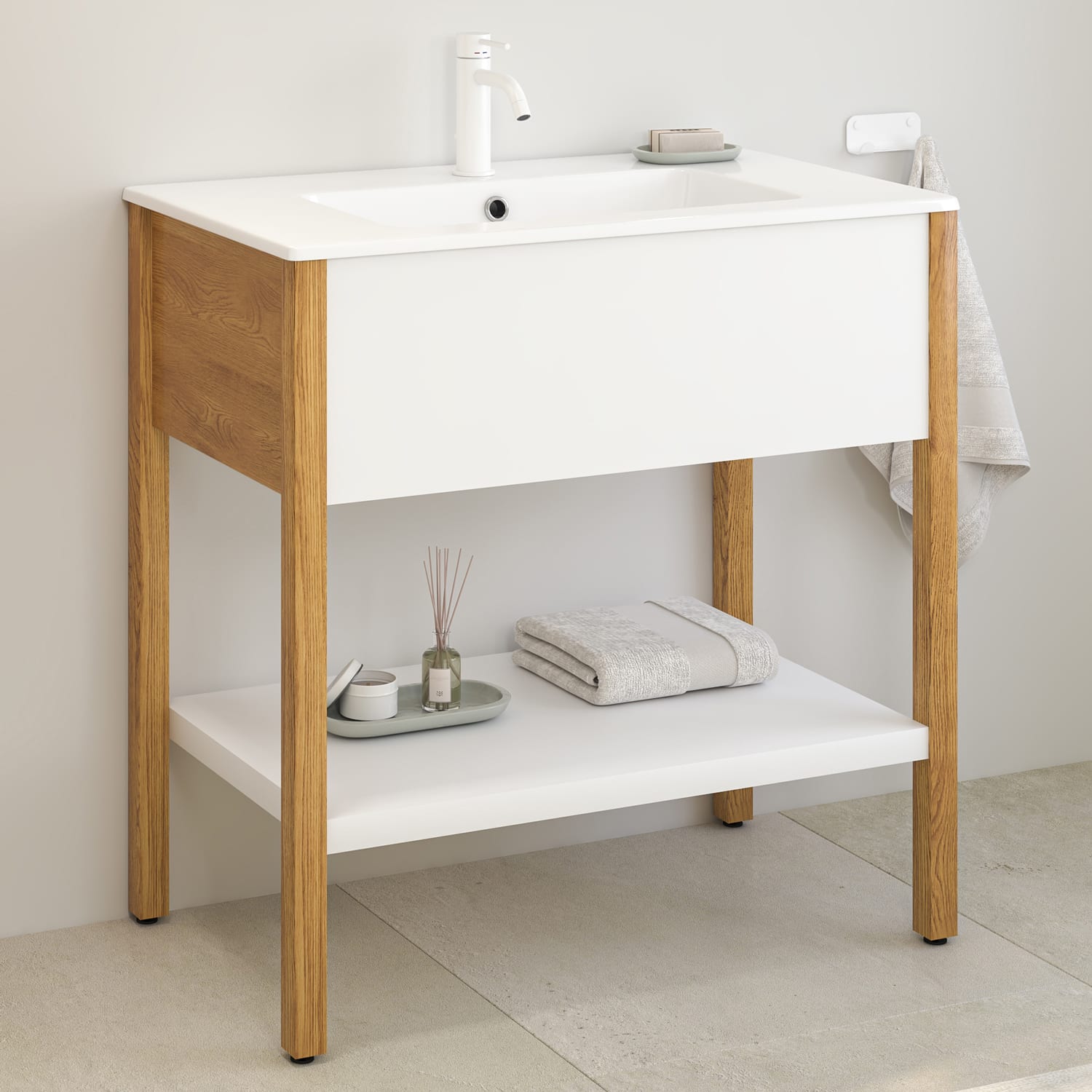 Loft 2.0 Waschtischunterschrank 80 cm, mit Holzgestell