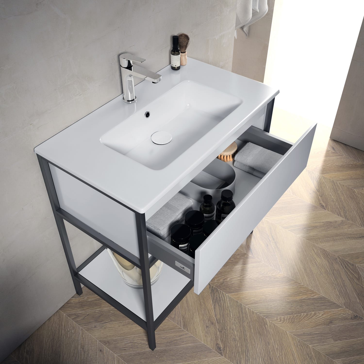 Loft 2.0 Waschtisch mit Unterschrank 80 cm, mit Metallgestell