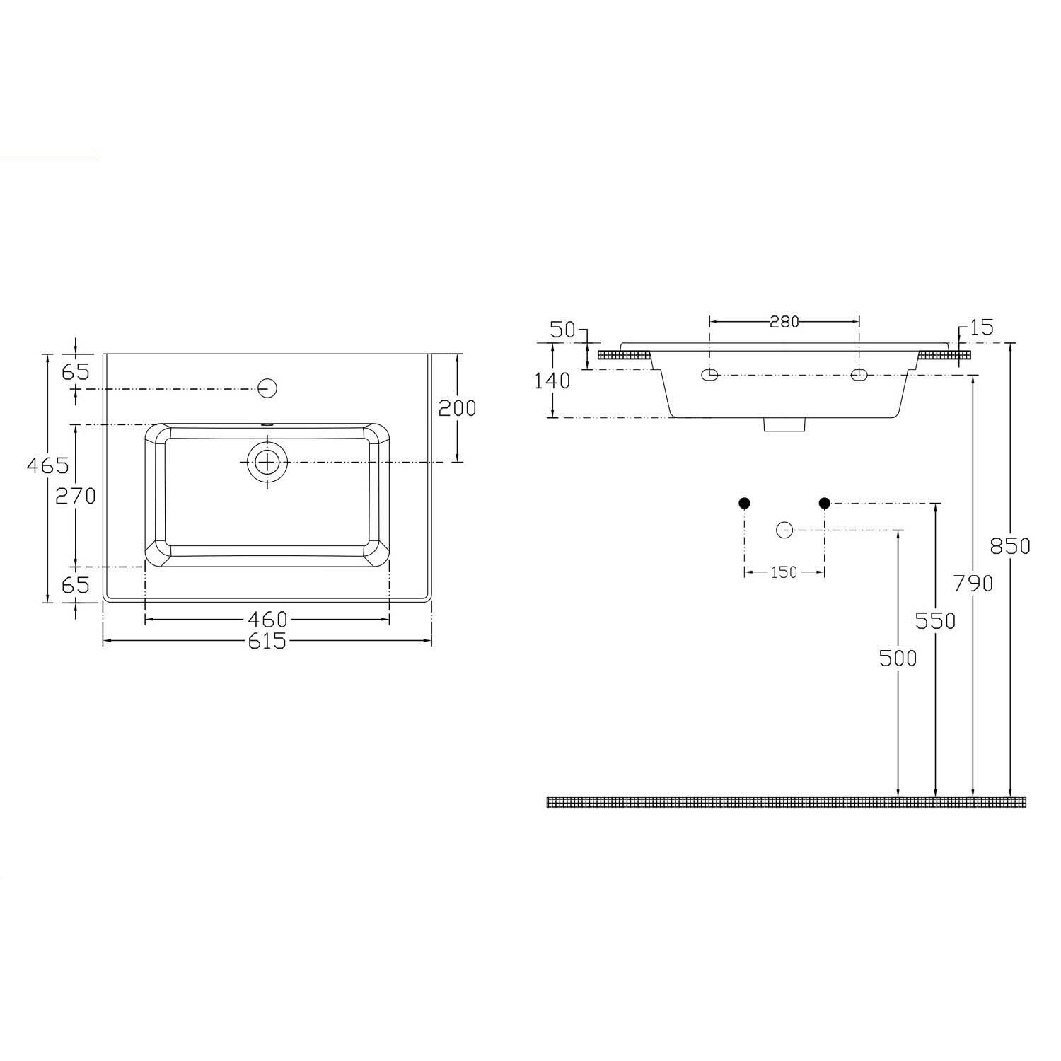 - Abmessungen: B: 61,5 T: 46,5 H: 14 cm