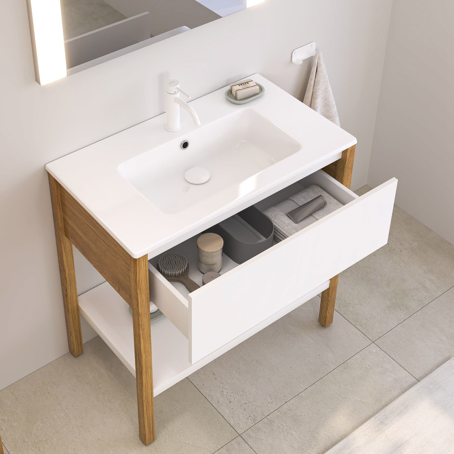Loft 2.0 Waschtisch mit Unterschrank 80 cm, mit Holzgestell